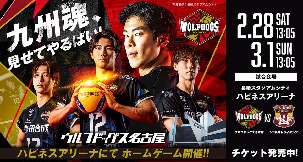2025-26シーズン、ウルフドッグス名古屋は“九州からもウルドファミリーの輪を広げたい”という想いのもと、クラブ史上初となる HAPPINESS ARENA でのホームゲーム開催に挑戦いたします。