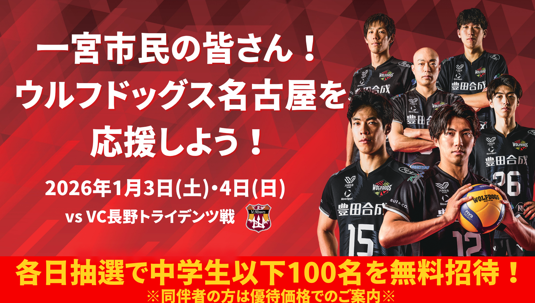一宮市在住の中学生以下の方を対象に、各日抽選100名をホームゲームにご招待いたします!
