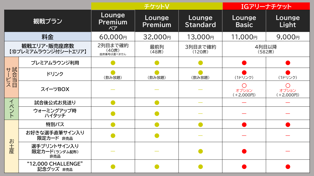 ※Lounge Planはリセール可能チケットです。ただし、Lounge Premiumペアのみリセール不可。