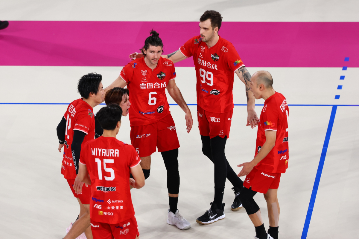 9,000人を超える観客がアリーナに詰めかけたレギュラーシーズン第4節、GAME2のスタメンはセッターが深津英臣でオポジットに宮浦健人、アウトサイドヒッターは水町泰杜と山崎彰都、ミドルブロッカーは傳田亮太とノルベルト・フベルがそれぞれ対角に入った。