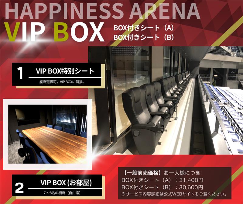 さらに!今回特別にHAPPINESS ARENAの「VIP BOX※」付きのシートを販売いたします。