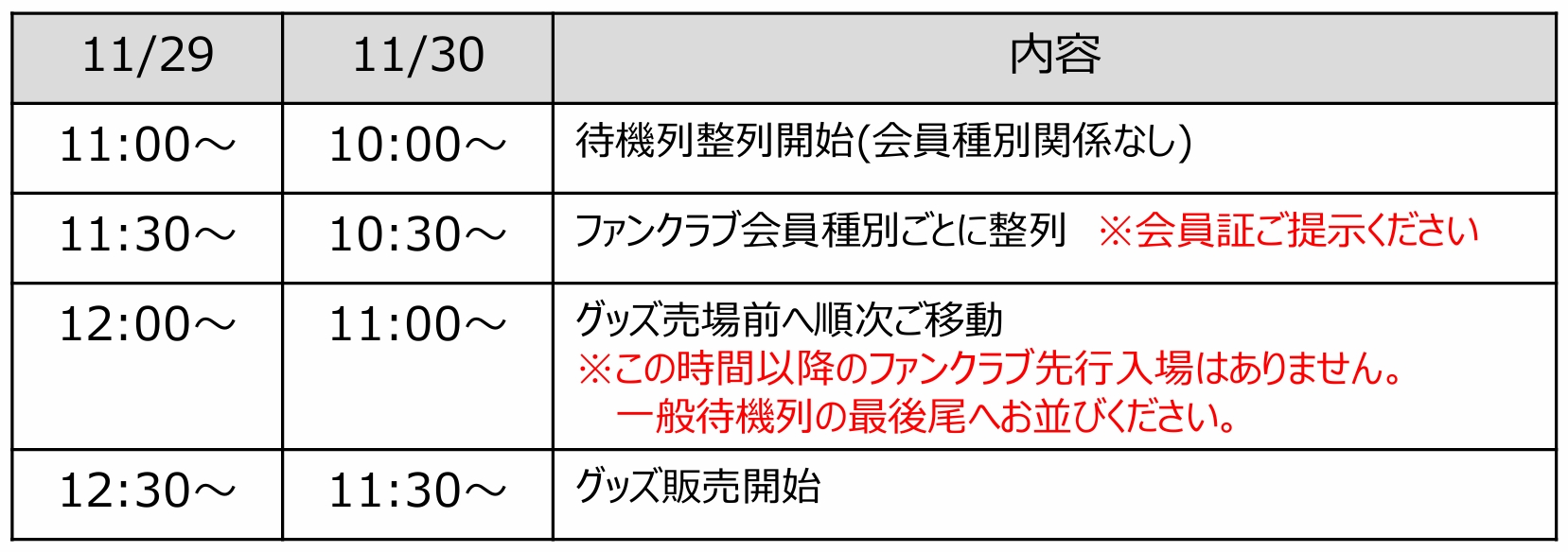 [ファンクラブ会員向けグッズ売り場先行入場時間]