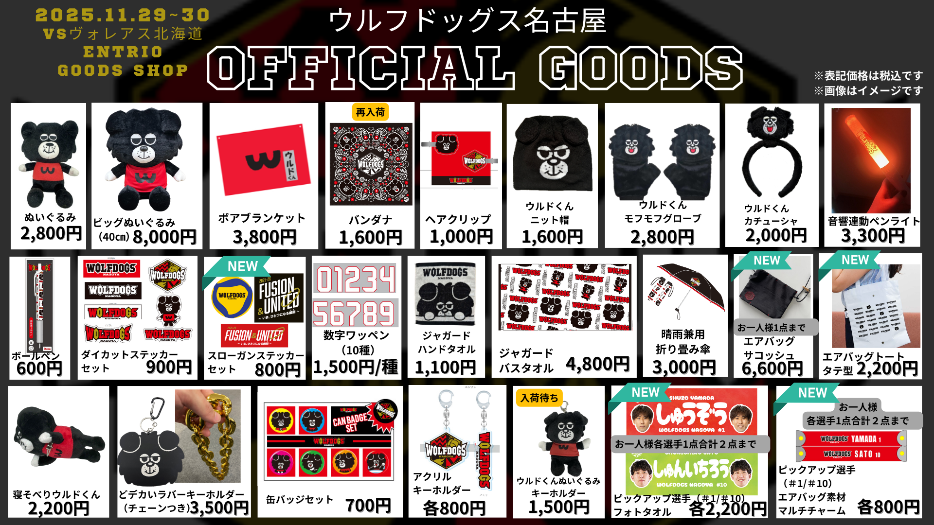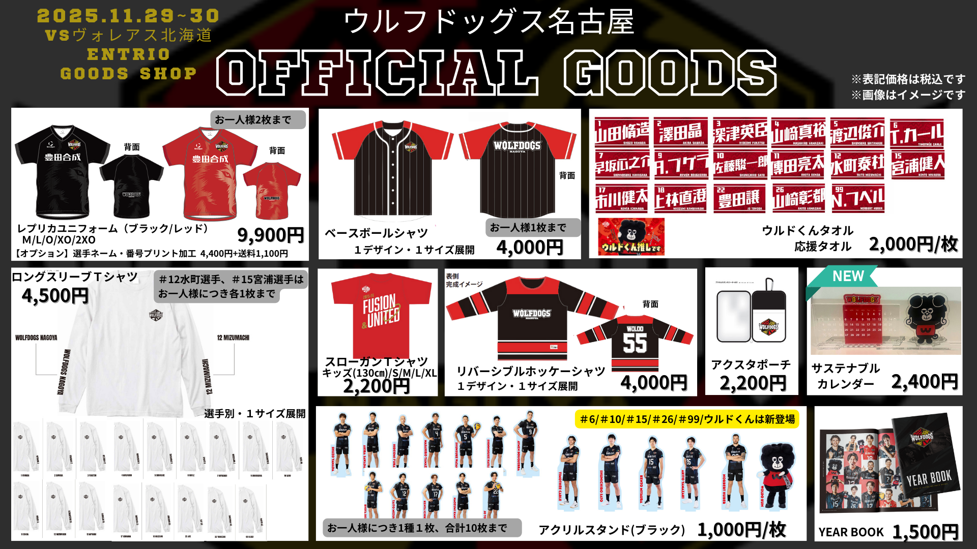 11月29日・30日のホームゲームで販売をするオフィシャルグッズのお知らせをいたします。