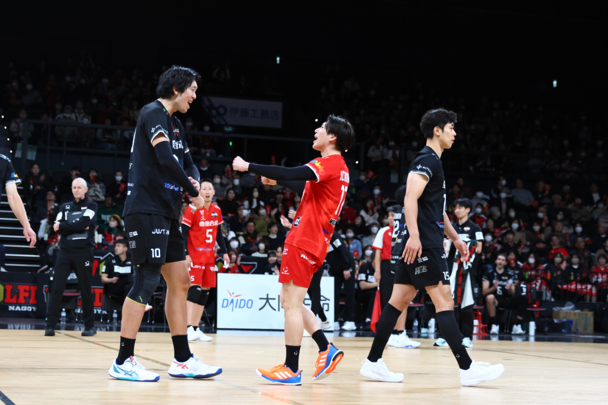 ウルドタウン稲沢DAYとして開催されるレギュラーシーズン第6節、GAME1のスタメンはセッターが深津英臣でオポジットに宮浦健人、アウトサイドヒッターはティモシー・カールと水町泰杜、ミドルブロッカーは佐藤駿一郎とノルベルト・フベルがそれぞれ対角に入った。