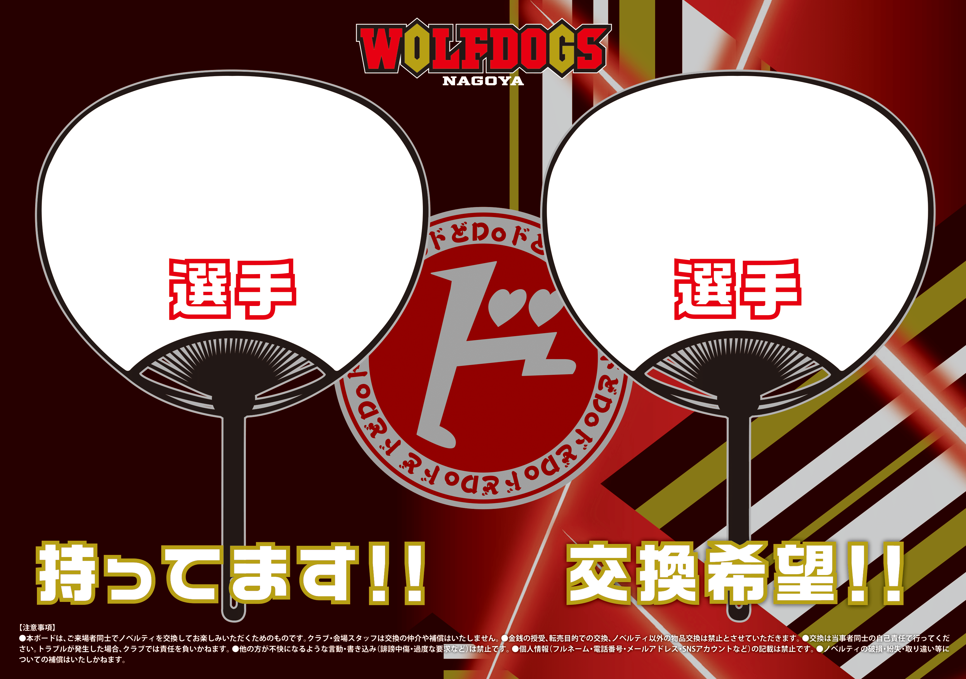・交換ボードは、ご来場者同士でノベルティを交換してお楽しみいただくためのものです。クラブ・会場スタッフは交換の仲介や補償はいたしません。