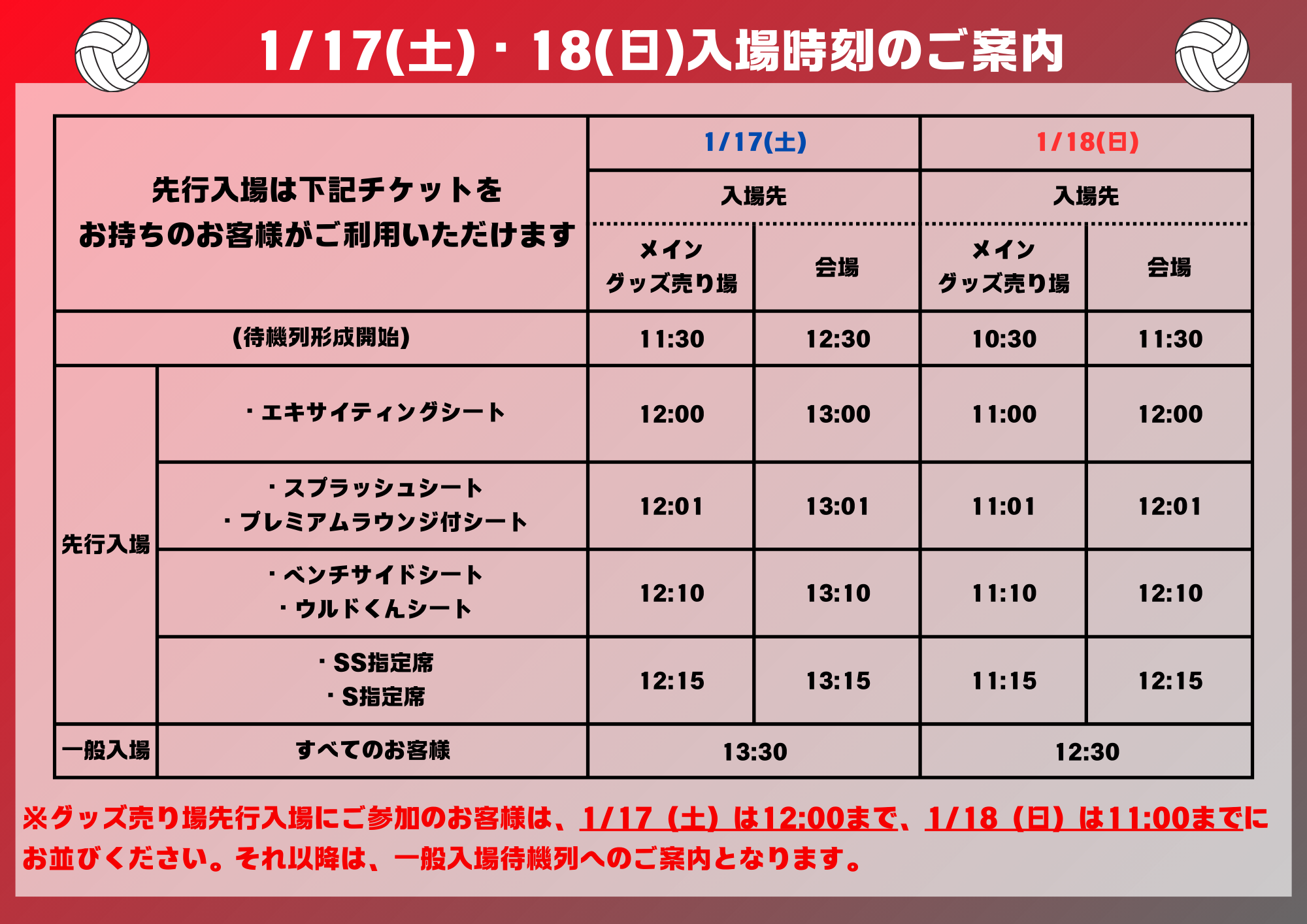 ・先行入場の各開始時刻は、当日の状況により変更となる場合がございます。