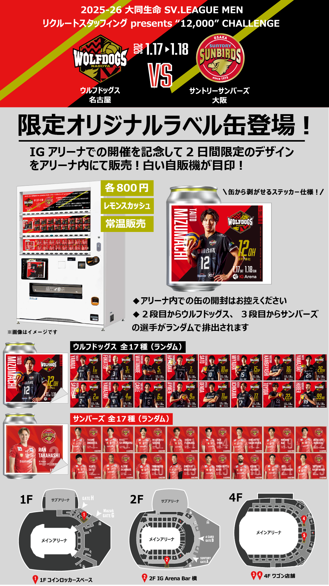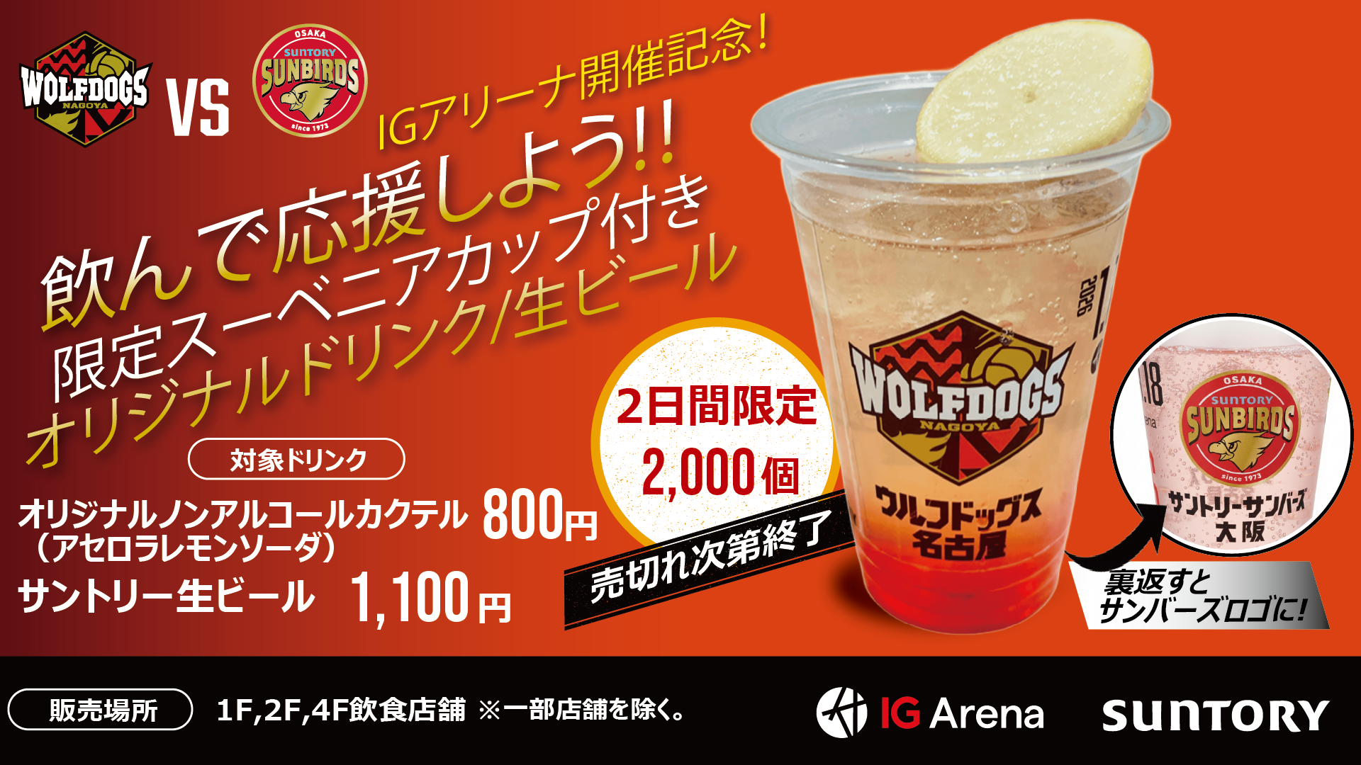 IGアリーナ×サントリーサンバーズ大阪×ウルフドッグス名古屋コラボのオリジナルドリンク販売決定!