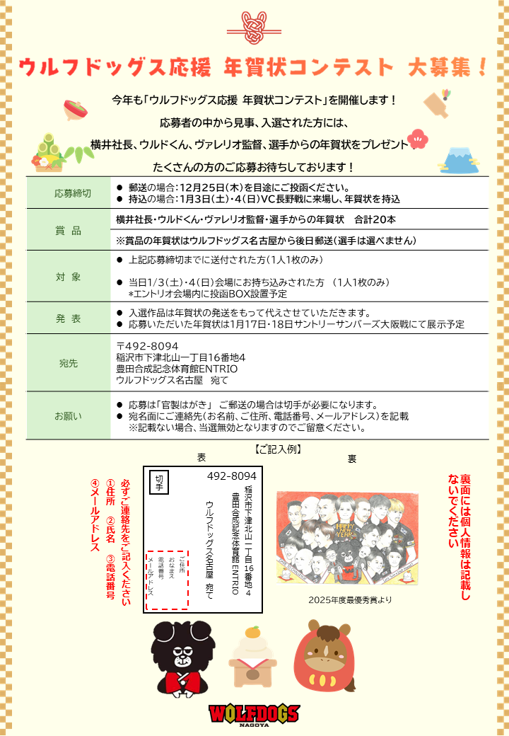 毎年実施してる「ウルフドッグス応援 年賀状コンテスト」を今年も開催します!
