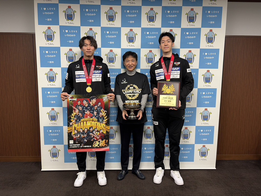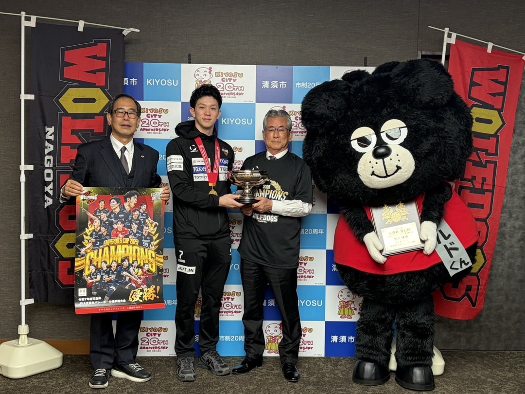 ウルフドッグス名古屋のホームタウン各市へ、『令和7年度 天皇杯JVA全日本バレーボール選手権大会』の優勝報告に伺いました。