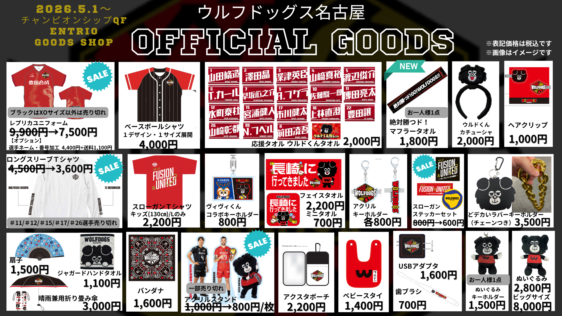 5/1(金)、5/2(土)、5/3(日)※1に豊田合成記念体育館エントリオにて開催の2025-26 大同生命SV.LEAGUE MEN CHAMPIONSHIP QuarterFinalsにて販売をするオフィシャルグッズのご案内をいたします。